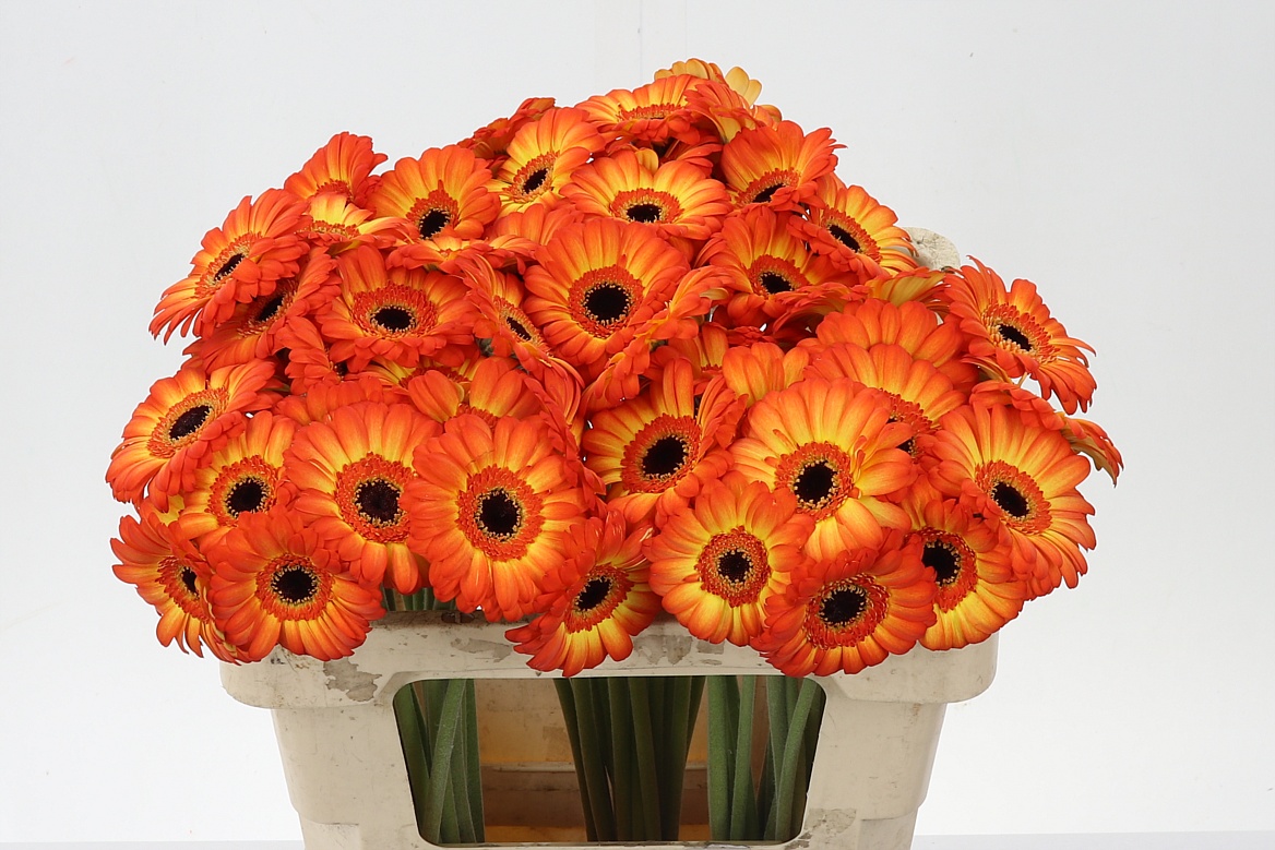 Colli 5 Minimum Steellengte 50 Cm Inhoud 60 Minimum Bloemdiameter 7 Cm Aantal 300 Rijpheidsstadium 1-2 Kleur Twee Kleurig Certificaten MPS ABC Mps A+ Fustcode 996 Land van herkomst NL Kweker Oudijk Gerbera ≥ 60 stks -,--Ge Mi Flamazing